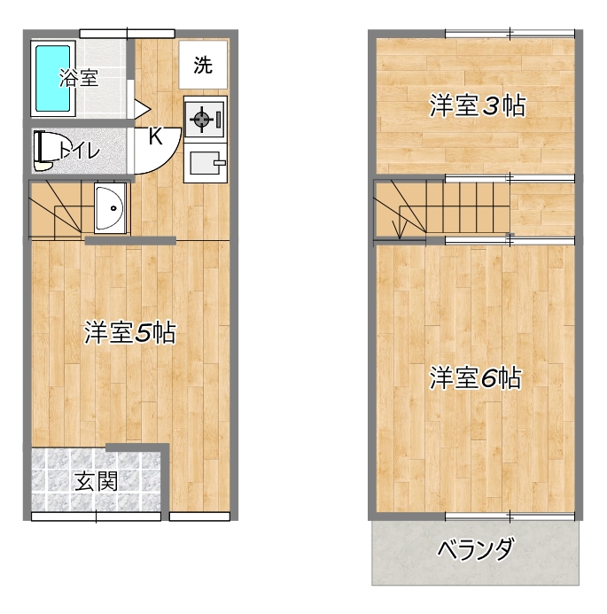 | 間取り内訳 | 2K+S: 洋5・洋6・洋3 |